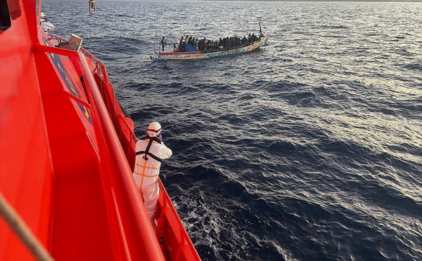 ARRAISONNEMENT D’UNE PIROGUE AVEC 97 MIGRANTS CLANDESTINS : 83 Sénégalais dont trois femmes et deux mineurs, 12 Gambiens et 02 Maliens secourus par la marine
