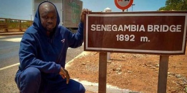 Sonko se photographie au pont de Gambie