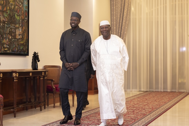En déplacement en Côte d'Ivoire, dans le cadre d'une visite officielle de trois jours, Ousmane Sonko, Premier ministre du Sénégal, multiplie les contacts. Après l'accueil chaleureux qui lui a été réservé par le Premier ministre Ivoirien, Ousmane Sonko a été reçu en audience par le Président Alassane Dramane Ouattara. On ne sait pas de quoi ils ont discuté, mais d'après les informations, c'était pour renforcer les relations bilatérales entre les deux états. Entre Dakar et Abidjan.