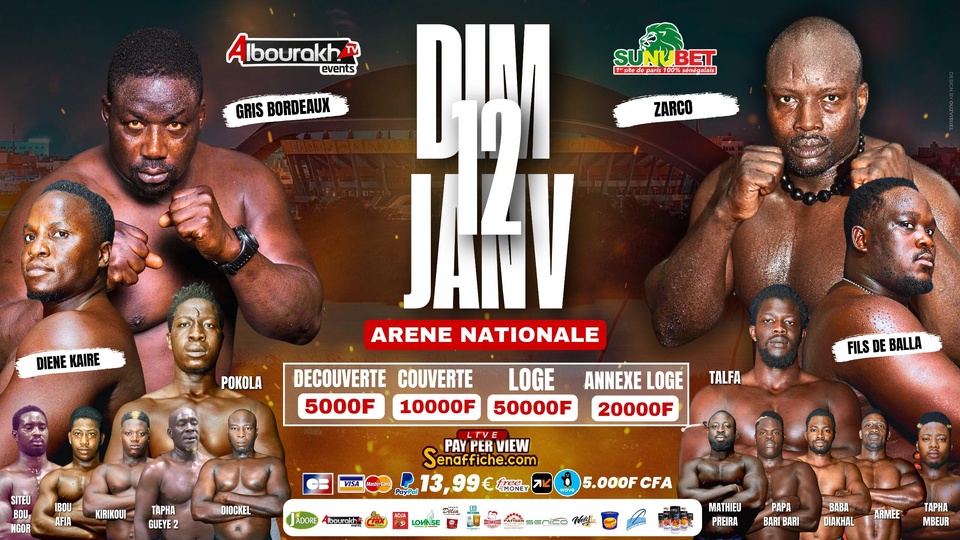 L’Arène nationale sera le théâtre d’un événement spectaculaire organisé par la structure Albourakh Events du promoteur de lutte Baye Ndiaye, le 12 janvier 2025. Le producteur Baye Ndiaye a ficelé de grandes affiches telles que Pokola vs Talfa ou encore le grand match entre le 3e Tigre de Fass Gris Bordeaux et le fils de Grand-Yoff Zarco, qui est en pleine forme avec cinq victoires consécutives. Des combats attrayants qui raviront les passionnés de lutte.